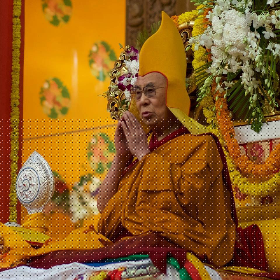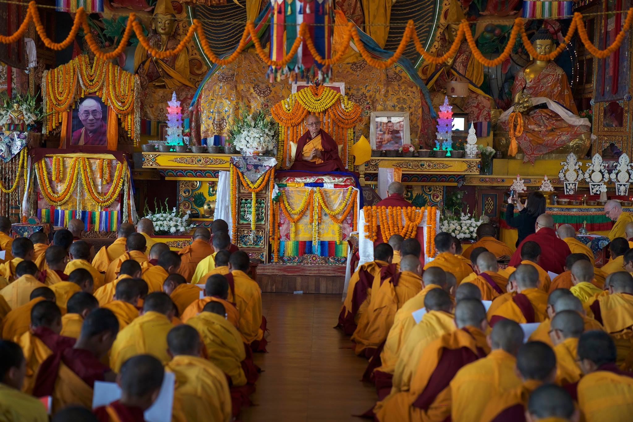 Chapter title: Requests Recalling the Guru’s Qualities: His Holiness the Dalai Lama, Jangchub Lamrim Teachings, South India, 2015. Photo Bill Kane.