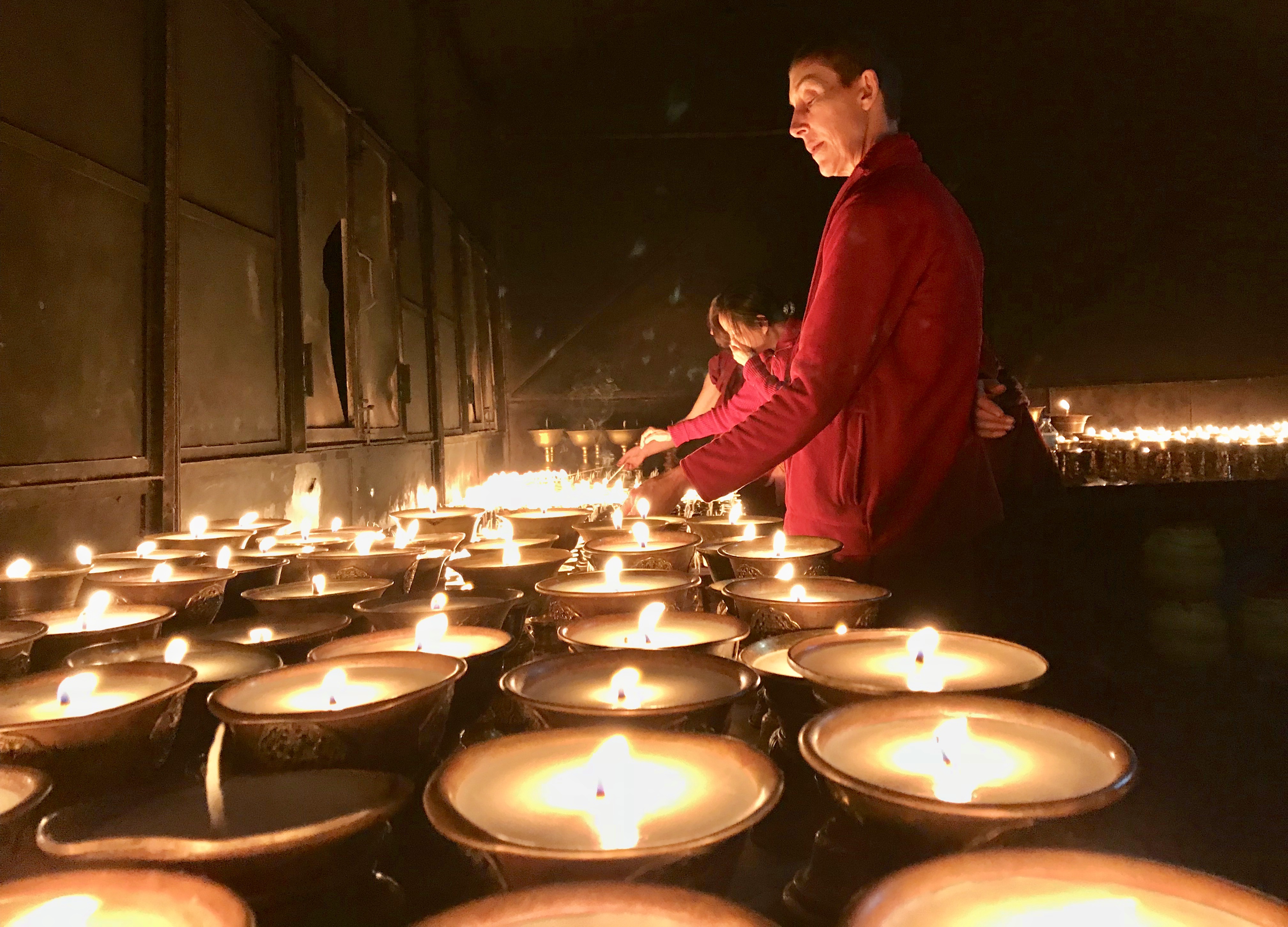 Chapter title: The Second Limb: Offerings: Offering butter lamps at Mandarava, Nepal, 2018. (Photo Peter Ho)