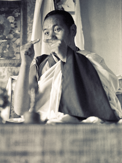 Philosophy and Action: Lama Yeshe teaching in the gompa (shrine room) at Kopan Monastery, Nepal, 1974. Photo by Ursula Bernis.